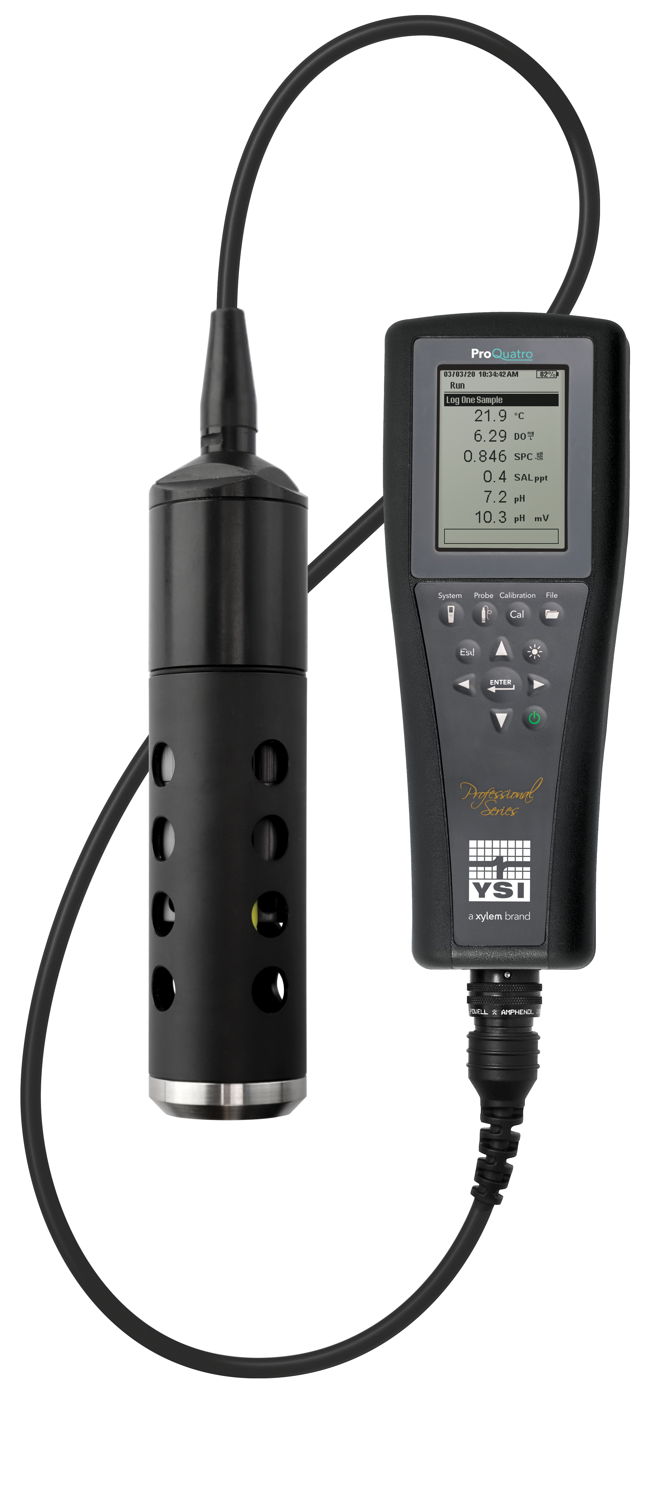 The ProQuatro handheld multiparameter meter measures a variety of combinations of dissolved oxygen, conductivity, specific conductance, salinity, resistivity, total dissolved solids (TDS), pH, ORP, pH/ORP combination, ammonium (ammonia), nitrate, chloride and temperature.